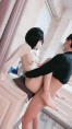 背个小书包新人眼镜小萝莉娇小身材炮友操逼白嫩贫乳多毛粉穴坐在桌子上操落地窗边骑坐